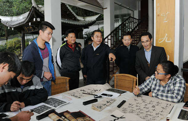 2015年11月18日下午,贵州省教育厅党组成员、省委教育工委副书记赵廷昌带领贵州民族大学宣传部部长黄平、贵州医科大学宣传部部长潘丽芬、省教育厅社政处副处长赵祥并组成检查组,到贵州大学中国文化书院进行“贵州省优秀校园文化育人基地”建设情况实地检查。贵州大学党委副书记骆长江、党委宣传部部长周乐成,贵州大学党委研究生工作部、贵州大学团委、人文学院、艺术学院等学校相关单位负责人陪同检查。