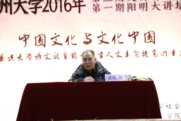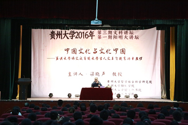 为弘扬中华传统文化,提高大学生文化素养,2016年3月22日下午,由贵州大学哲学社会科学研究院主办,贵州大学阳明学院、贵州大学中国文化书院、贵州大学人文学院共同承办的贵州大学2016年第三期文科讲坛、第一期阳明大讲坛在贵州大学北校区大礼堂正式开讲。本次讲座邀请到著名作家、北京语言大学人文学院梁晓声教授担任主讲,题为“中国文化与文化中国——兼谈大学语文教育对大学生人文素质提高的重要性”。