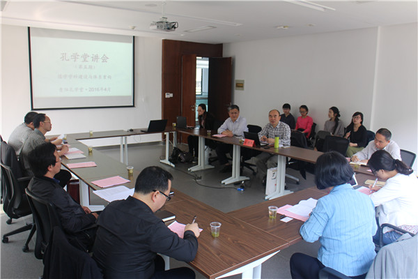 本网讯(记者田钰琳)4月15日,以“儒学学科建设与体系重构”为主题的孔学堂讲会第五期在贵阳孔学堂中华文化(国际)研修园举行。来自北京大学、四川大学、贵州大学、贵州省社会科学院等多位专家学者围绕着“儒学如何进行学科的恢复和重建”展开热烈讨论。四川大学国际儒学研究院院长舒大刚作为本期讲会的主讲人及主持人。