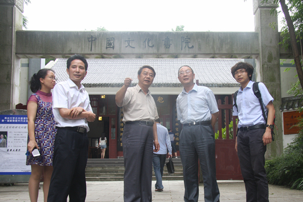 2016年7月5日下午,应邀为贵州大学党委中心组2016年第7次理论学习(扩大)会议作学术报告之际,中国人民大学国际关系学院副院长、中国对外战略研究中心主任、博士生导师金灿荣教授,在贵州大学党委宣传部副部长石明昌、贵州大学公共管理学院国际关系学博士杨达等陪同下到访贵州大学中国文化书院。