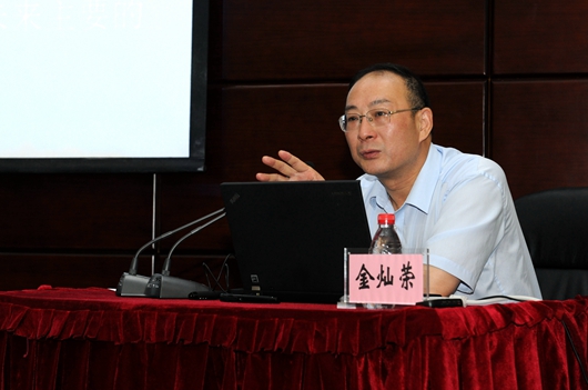 另据贵州大学新闻网报道,当日上午,在贵州大学校长郑强教授的主持下,金灿荣教授在贵州大学北校区行政楼学术报告厅为党委中心组2016年第7次理论学习(扩大)会议作“国际热点与十八大以来的中国外交”主题报告。校领导陈坚、郑强、宋宝安、王红蕾、杨伟民、骆长江、杨未、金道超、赵德刚、汪海波、向淑文、李军旗、张覃、谢田凯,省文化厅厅长徐静,省人民医院党委书记、贵大医学院副院长张湘燕,安顺学院院长刘雷、兴义民族师范学院副院长邱国俊,全校在职处级干部、师生代表等聆听了金灿荣教授的精彩讲座。