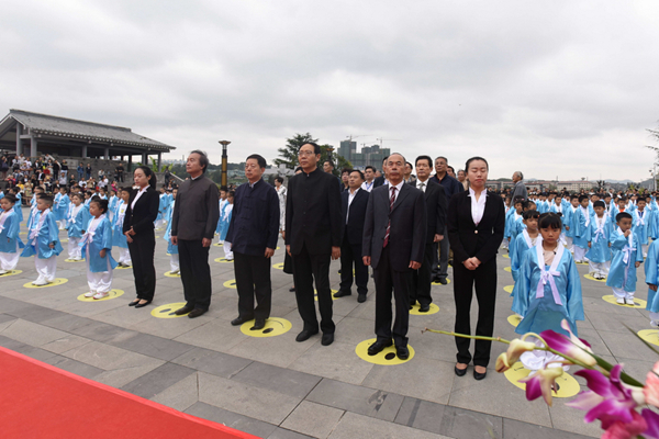 来自第七届两岸汉字艺术节的两岸艺术家代表、学者代表、师生代表及有关领导一千余人齐聚贵阳孔学堂,举释奠古礼,祭祀先师孔子,以追思先贤,蒙童开笔启智,以崇德立志。
