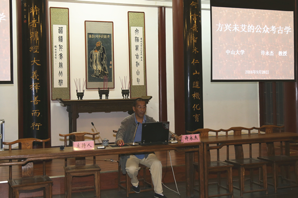 2016年9月28日晚,由贵州大学哲学社会科学研究院主办,贵州大学历史与民族文化学院、贵州大学文学与传媒学院联合承办的贵州大学第345期(2016年第45期)文科讲坛、贵州大学历史与民族文化学院(中国文化书院)“贵山论坛”第105期学术讲座——“方兴未艾的公众考古学”,在中国文化书院勉学堂举行。