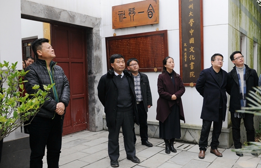 贵大新闻网讯(记者 王顺松 摄影 陈恒)12月21日,以省委教育工委副书记赵廷昌为组长的专家组一行对我校“贵州省高校人文社科基地”进行考察评估,并召开座谈会,校党委副书记骆长江出席会议。评估专家组查阅各基地相关材料,并根据各基地的自评报告和评分表,逐一核实所有考评项的支撑材料。