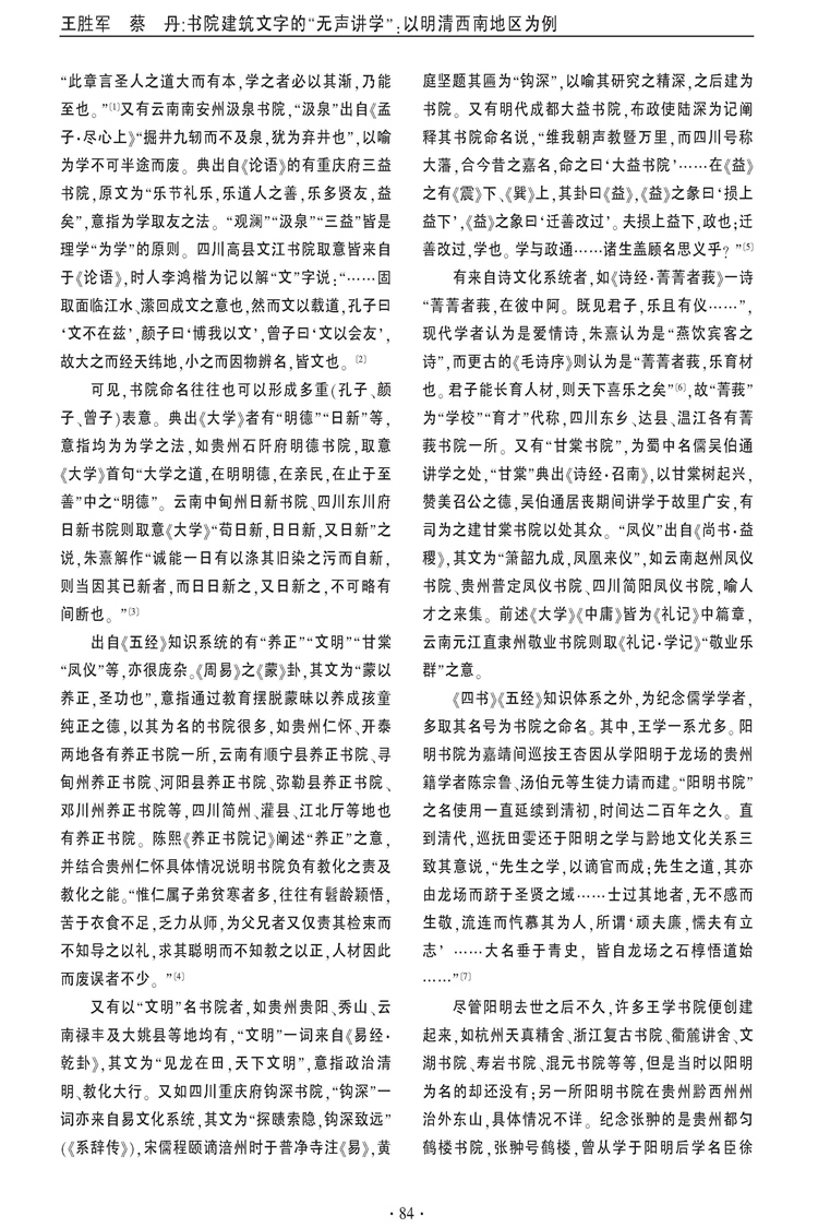 2017年第1期《教育与考试》刊载贵州大学历史与民族文化学院(中国文化书院)王胜军副教授等论文“书院建筑文字的‘无声讲学’:以明清西南地区为例”。全文如下:
