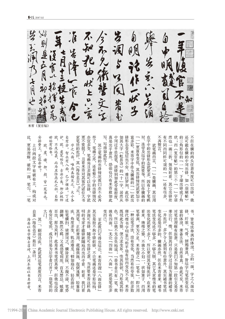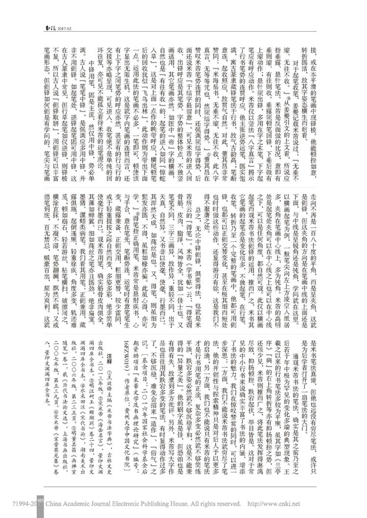 2017年第02期《书法》刊载贵州大学历史与民族文化学院(中国文化书院)周兴禄副教授论文“论米芾书法的笔法”。全文如下: