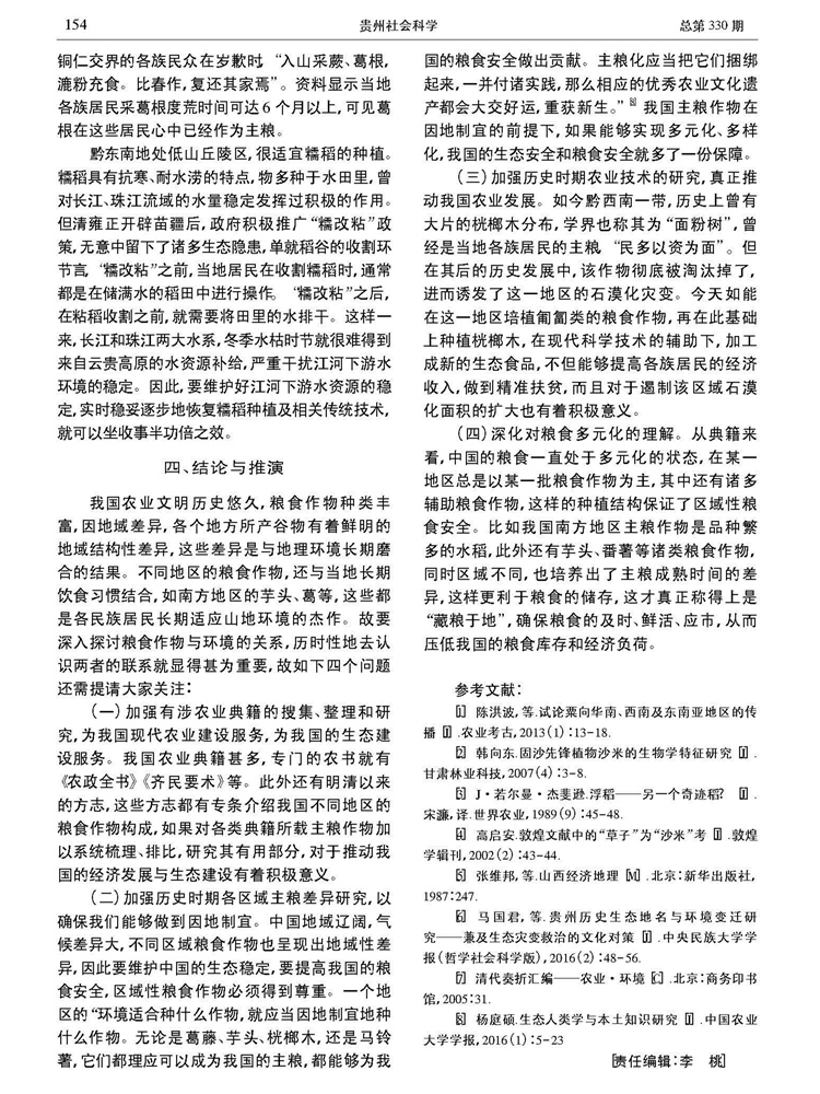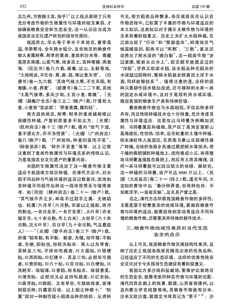 2017年6月总330期、第6期《贵州社会科学》刊载贵州大学历史与民族文化学院(中国文化书院)马国君教授论文,题:我国粮食作物地域性差异的生态价值探微——以清代方志“谷之属”所涉农作物为例。2017年7月3日,贵州省哲学社会科学规划办公室网站《专家视点》栏目全文转载。全文如下: