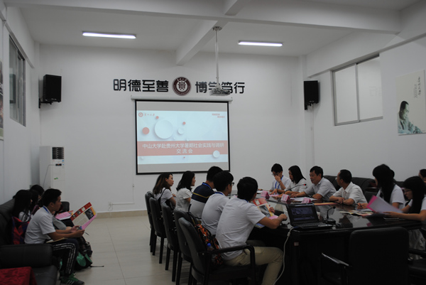 中山大学赴贵州大学暑期社会实践与调研交流会及主题报告会在贵州大学学生工作处会议室举行,学生工作处副处长钱龙主持交流及报告会。