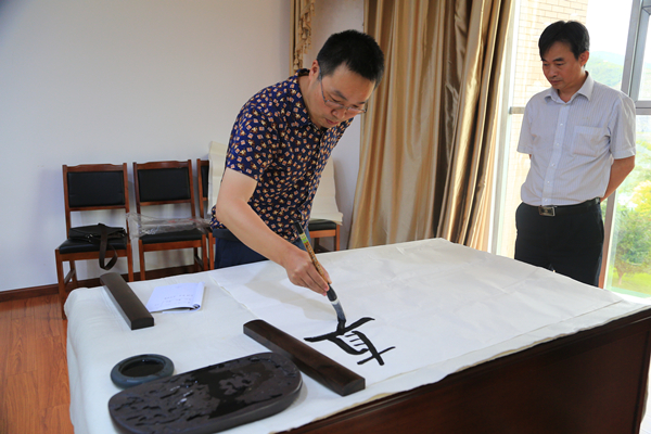 讲座后,周兴禄还应邀为该公司挥毫书写了厂训、企业精神等内容的书法作品。