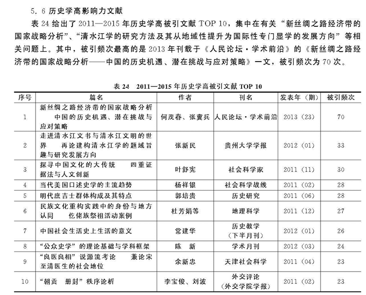 张新民教授清水江学研究论文获列2011-2015年历史学高影响力文献第二位