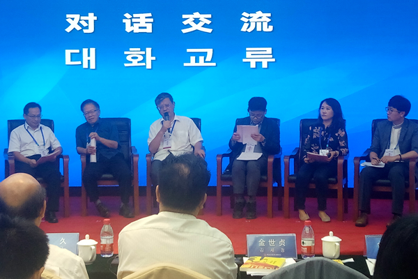 在圆桌对话环节,金润璄、张新民、史光辉、余怀彦、朴成浩、郑宗模六位嘉宾就现场与会者的相关思考及所提出问题进行对话。