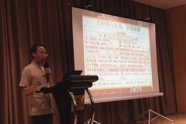 今天很高兴作这个汇报。我站在这个地方,有一点忐忑不安,第一次有这么多的朋友在这个地方一起来共同学习王阳明心学。我以前主要是对学生讲课。今天看见有这么多朋友在这里,这还是第一次。大家研究得都非常深,所以我有点不安,如果讲的不对的地方,请大家批评指正。