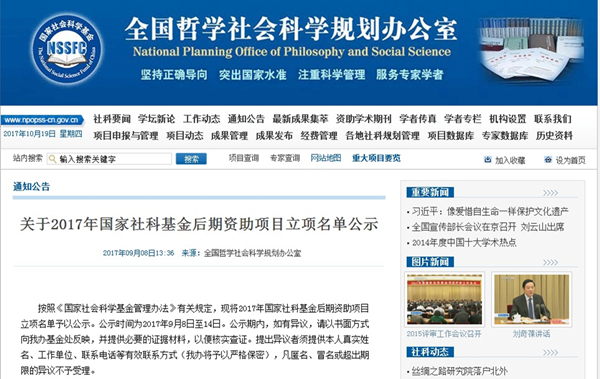 | 2017年国家社科基金后期资助项目立项名单公示 |