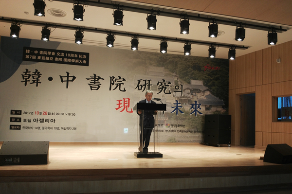 2017年10月28日-10月30日,“韩·中书院研究现在与未来”国际学术会议在韩国大邱市举行。中韩书院研究学术会议由中国书院界与韩国书院界学者同仁共同举办,每两年举办一次。此次会议时值书院学术会议第10周年,址选韩国大邱市达城郡琵瑟山,由韩国岭南大学承办。与会学者来自韩国、中国、德国等地,中国贵州大学历史与民族文化学院(中国文化书院)王胜军副教授应邀赴韩国参加会议。