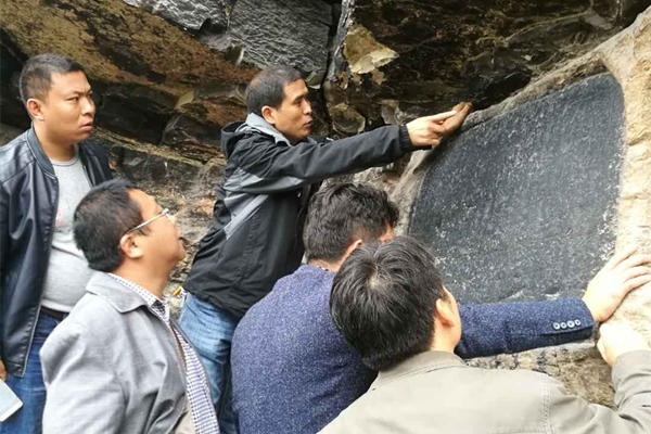 11日,专家首先考察了息烽三妹岩古代岩画和摩崖石刻。三妹岩位于息烽北部,是古代播州进入贵阳的必经之路,为历代商旅往来和兵家必争之地,在此留有大量摩崖石刻和岩画。其中,万历初年的彝文摩崖最为珍贵,记载了贵州宣慰使安贵荣在此祭祀祖灵魂的经过,对研究贵州土司文化具有重要价值。专家组对这些岩画、题字和摩崖进行了仔细辨认和分析,并摄像留存。