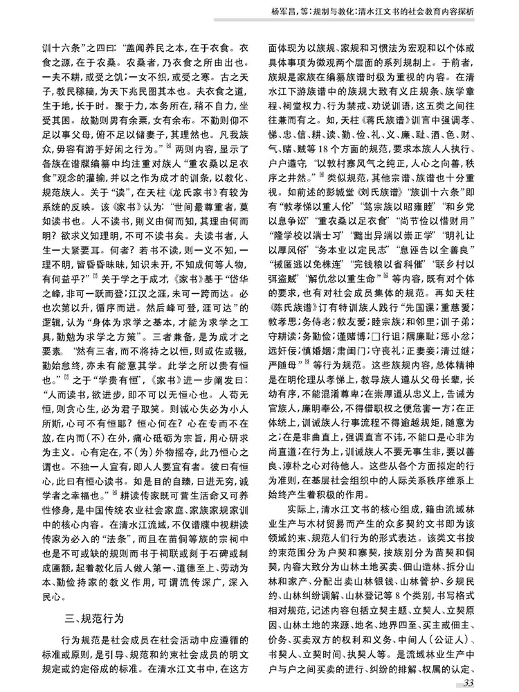 2017年8月第35卷第4期《贵州大学学报》(社会科学版)刊载贵州大学历史与民族文化学院(中国文化书院)及贵州大学人口·社会·法制研究中心杨军昌教授、湖南师范大学教育科学学院博士研究生杨蕴希研究论文。题:规制与教化:清水江文书的社会教育内容探析。