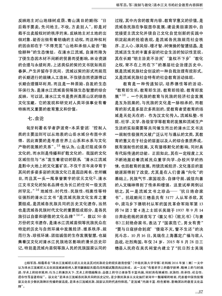 该研究为国家社科重大招标项目“西南少数民族传统生态文化的文献采辑、研究与利用”(16ZDA156)、国家民委民族研究项目“清水江流域少数民族教育文化研究”(2015-GM-139)、贵州大学文科重点学科及特色学科重大科研项目“历史与借鉴:贵州少数民族教育文化研究”( GDZT201303)、贵州省教育厅高校人文社科基地项目“清末民初清水江流域教育发展与民族社会变迁”(2016JD017)、贵州大学民族学重点学科群建设资助项目成果。全文如下: