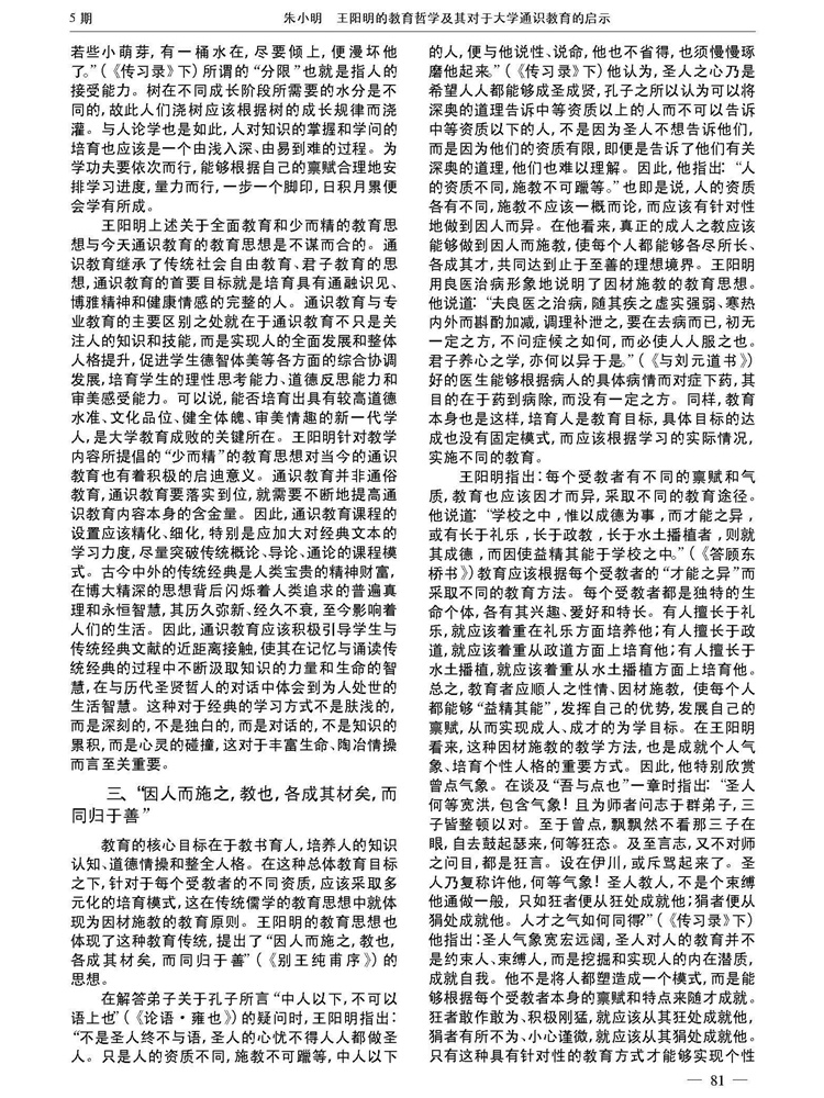 2017年10月第12卷第5期《贵阳学院学报》(社会科学版) 刊载原贵州大学中国文化书院、现贵州大学阳明学院副教授朱小明博士贵州大学高等教育研究项目“王阳明的教育哲学与贵州大学阳明学院通识教育课程体系建构及其应用”(项目编号:gdgj2016007)阶段性成果。全文如下: