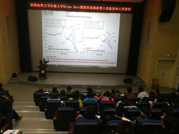 2017年11月26日至11月30日,在2017年贵州省文教类高端外国专家项目“中低品位磷矿石浮选表面化学研究”的资助下,加拿大韦仕敦大学Brian R. Hart教授及夏柳荫博士应邀在贵州大学进行为期5天的学术交流。 Brian R. Hart教授是将X射线光电子能谱(XPS)、飞行时间二次离子质谱仪(TOF-SIMS)以及将统计学等方法应用到浮选中矿物表面化学性质研究较早的专家之一,是矿物表面化学领域的国际知名专家。