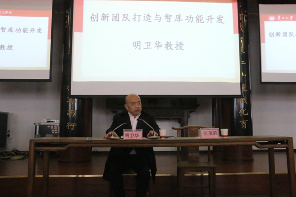 分论坛开幕式由何茂莉教授主持。首先由张清教授致开幕词,对人文艺术分论坛开幕表示热烈的祝贺并预祝本次论坛取得圆满成功。紧接着论文主讲人金荣慧同学带领参加论坛的研究生代表进行学术诚信宣誓,最后主讲嘉宾明卫华教授作了题为《创新团队打造与智库功能开发》的精彩讲座,就创新的重要性及智库的功能开发做出了创新性建议,倡导同学们要好好运用智库去促进我们国家乃至世界的兴旺发达。
