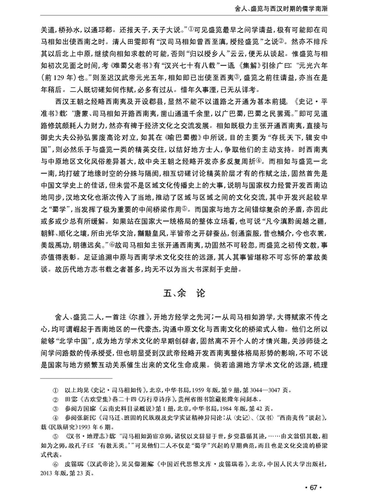 2017年第5期《孔子研究》刊载贵州大学中国文化书院教授兼荣誉院长张新民国家社科重大委托项目“阳明文化与现代国家治理研究”(项目编号:14@ZH054)的阶段性成果,题:舍人、盛览与西汉时期的儒学南渐。全文如下: