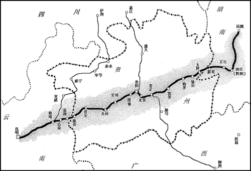 “苗疆走廊”概念,于2012年初被贵州大学民族学研究团队提出并引起学界的普遍关注。所谓“苗疆走廊”,在明代的文献中称为入滇“东路”或“一线路”,指元明时期以后开辟连接湖广与西南边陲云南省的一条重要交通驿道。它起始地为今天的湖南省常德市,溯沅江水陆两路而上至贵州省镇远县,然后改行陆路,东西横跨贵州省中部的玉屏、施秉、黄平、凯里、麻江、福泉、龙里、贵阳、清镇、平坝、安顺、关岭、晴隆、盘县等县市后进入云南省,经过富源、沾益、马龙等地后至昆明。驿道沿线经过湘、黔、滇三省的30余县市,全长1400多公里、覆盖面积约8万余平方公里、2400余万人口。