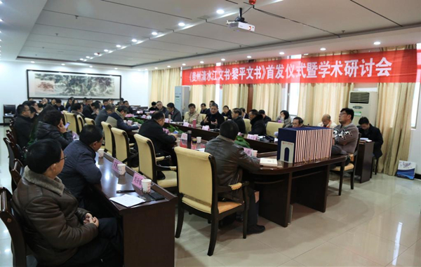 2018年1月19-20日,由凯里学院、贵州民族出版社主办,凯里学院期刊社、贵州省苗族侗族文化传承与发展协同创新中心、贵州原生态民族文化研究中心承办的《贵州清水江文书·黎平文书》首发仪式暨学术研讨会在凯里学院举行。贵州省社会科学院院长吴大华教授、中山大学文书学研究专家张应强教授及刘志伟教授、 北京大学赵世瑜教授、厦门大学民间文献研究中心主任郑振满教授、吉首大学民族文化专家杨庭硕教授及罗康隆教授、贵州师范大学副校长徐晓光教授等,黔东南州副州长桂富强,凯里学院院长姚仁海、副院长张雪梅以及来自海内外的专家学者、清水江文书研究团队、各界媒体和学生代表出席首发仪式。首发仪式仪式由张雪梅主持。