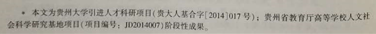 该文系贵州大学引进人才科研项目(贵大人基合字(2014)017号)、贵州省教育厅高等学校人文社会科学研究基地项目(项目编号:JD2014007)阶段性研究成果。原文标题及全文如下: