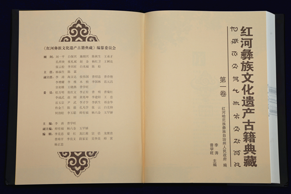 中共红河州委、州人民政府高度重视民族文化遗产抢救保护工作,中共红河州委宣传部组织州文产办、州民委、州民族研究所、红河学院和省民族古籍办公室等单位的领导和专家学者,就抢救保护红河彝族文化遗产古籍进行认真研究,参照国家针对汉文古籍实施《中华再造善本工程》的做法,编篡影印《红河彝族文化遗产古籍典藏》(20卷)大型丛书。