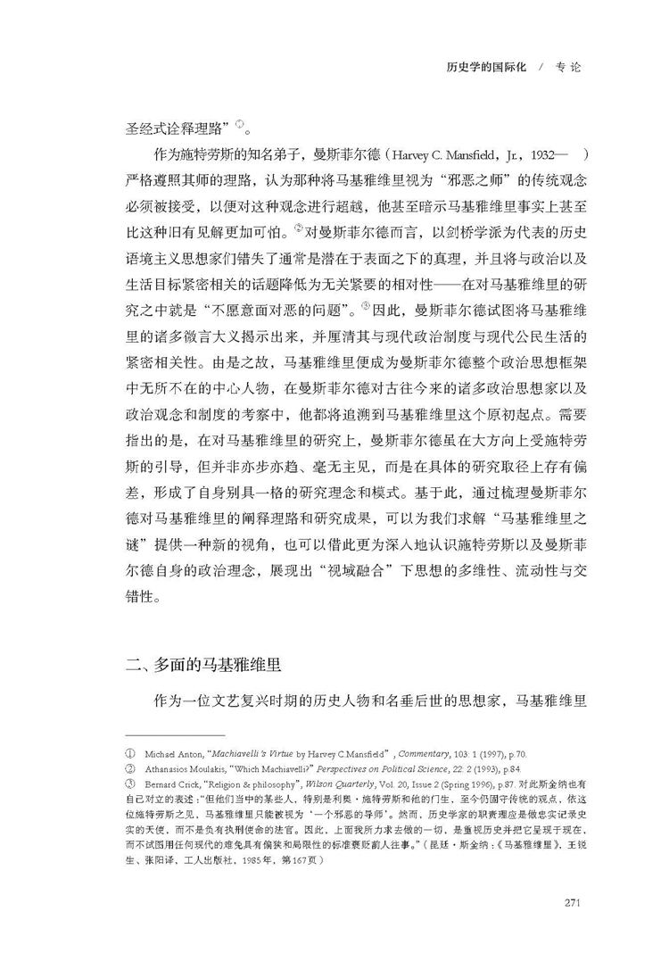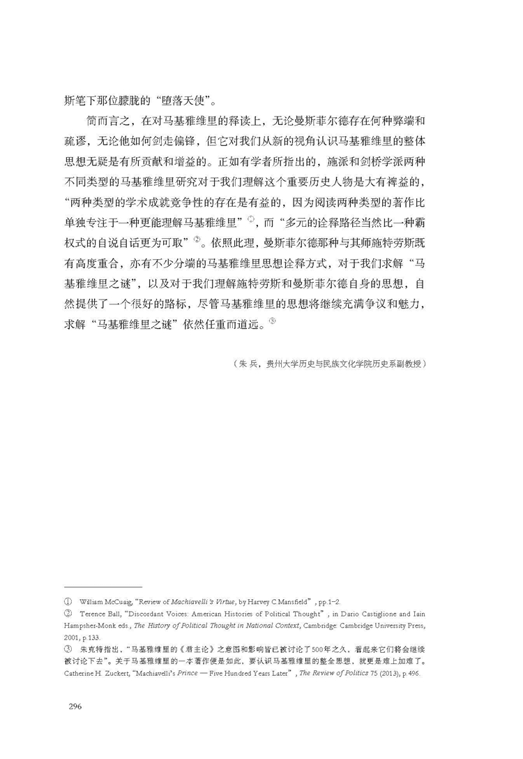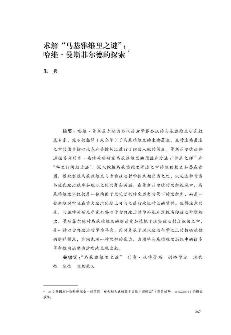 2018年第5卷第1期《世界历史评论》第9辑(历史学的国际化)刊载贵州大学历史与民族文化学院历史系副教授朱兵国家社会科学基金一般项目“意大利古典精英主义民主观研究”(项目编号:16BZZ004)的研究成果。题:求解“马基雅维里之谜”:哈维·曼斯菲尔德的探索。全文如下:
