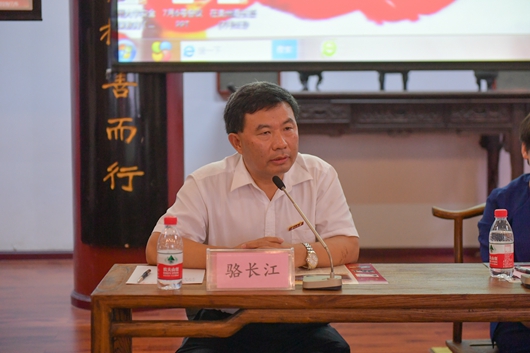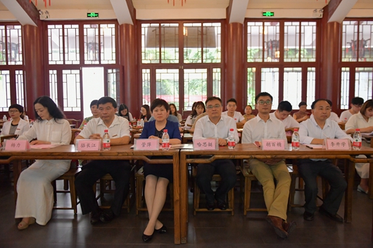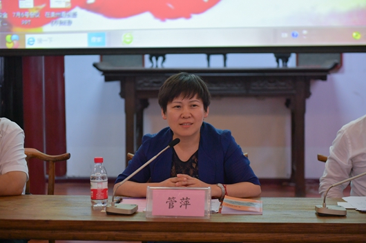 据贵州大学新闻网报道, 7月6日下午,中国人民大学国际新闻传播硕士班(以下简称国新班)社会实践总结交流会在我校中国文化书院举行。中宣部国际传播局副局长管萍,贵州省委宣传部副部长、省政府新闻办主任哈思挺,省委党史研究室副主任覃爱华,贵州大学党委副书记骆长江出席活动。
