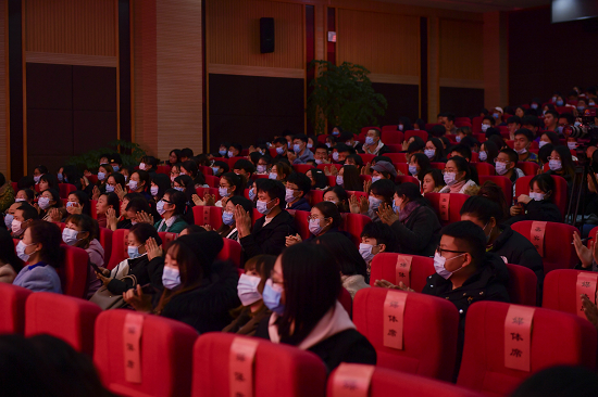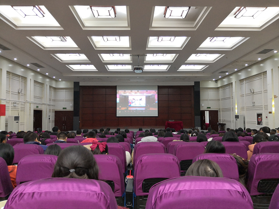 本次报告会设两个会场,主会场设在西校区贤正楼107报告厅,分会场设在东校区行政楼报告厅,分会场通过视频直播形式进行收看。全校师生代表800余人聆听报告会。
