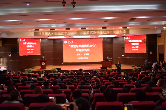 贵大新闻网讯 11月26日,中国文物学会会长、故宫博物院第六任院长单霁翔到我校作“故宫与中国传统文化”专题报告。中国银行贵州省分行行长黄黎阳、副行长宋玉红、资深客户经理李亦岚,贵州省教育厅学生资助管理中心主任张清,校领导李建军、骆长江、令狐彩桃、唐本文、杨松、陈祥盛出席报告会。副校长陈祥盛主持报告会。