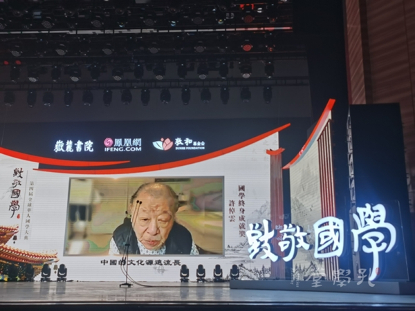 第四届全球华人国学大典“国学终身成就奖”许倬云先生在美国通过视频发表获奖感言。