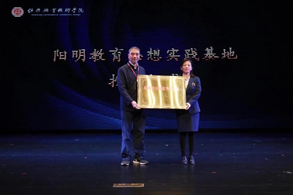 活动现场举行了“阳明教育思想实践基地”授牌仪式,浙江省稽山王阳明研究院执行院长潘建国为绍兴职业技术学院阳明学院授牌。随后,绍兴职业技术学院党委书记沈丽华为阳明教育思想论文征集优秀作者颁发了获奖证书。