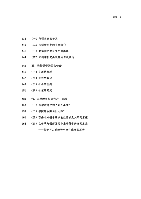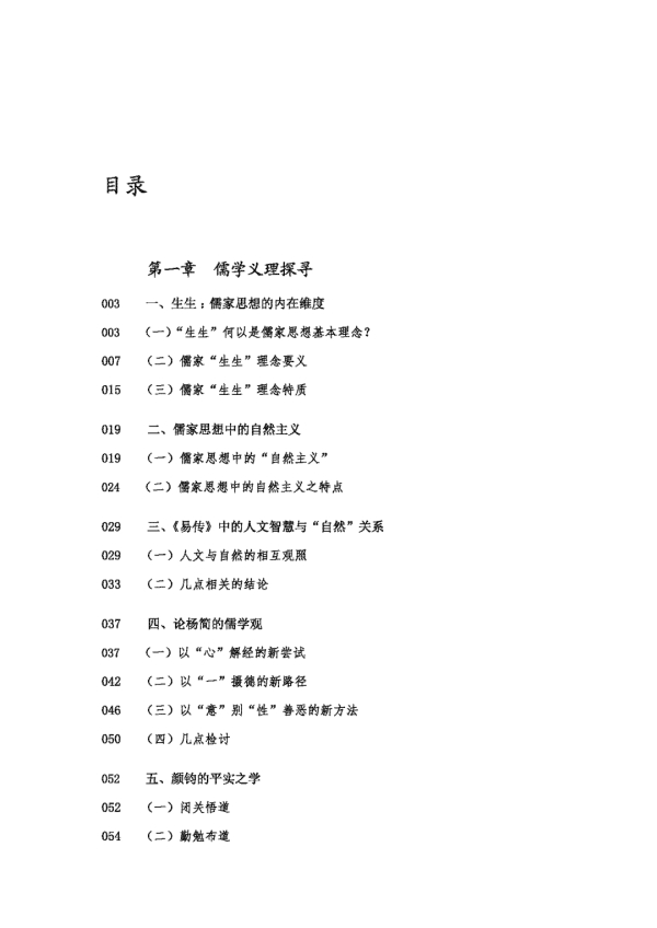 与此同时,我持续地以“生生”为核心对儒家思想展开了系统、深入的发掘、梳理和研究,认识到“生生”与太极、仁、理、气、性、心、良知等范畴关系密切而又优于它们,并确立起这些意识:“生生”是儒家思想的血脉,可以疏通儒家思想体系的所有经络;“生生”是儒家思想的源泉,可以实现儒家思想的活化;“生生”是儒家思想的条理,可以促进儒家思想价值的落实;“生生”是儒家思想新陈代谢的根据,能够全面地推动儒家思想的发展和更新;从而确定“生生”在儒家思想体系中的核心地位。因而我想,孔子创立儒学,在于提出“仁”这一标志性概念,从而奠定了儒家以积极的人文关怀为基调的思想特色;程颢言“吾学虽有所授,‘天理’二字却是自家体贴出来”,推动儒学本体化、思辨化,建立起儒学新形态;王阳明拈出“良知”二字,其言“我此良知二字,实千古圣贤相传一点滴骨血”,又言“吾良知二字,自龙场以后,便已不出此意”,而“圣贤论学,无不可用之功,只是致良知三字”,从而建立起以“良知”为核心的新儒学,并在一定程度上实现了儒学的推进,从而将儒学推向一个新阶段——心学形态阶段。进入20世纪,先后有熊十力、唐君毅、方东美、罗光、张岱年等对儒家“生生”思想的关注、梳理和阐发,“生生”逐渐进入学者的视野。本人在阅读前人作品、领悟前人思想的过程中,愈加坚信“生生”是那个隐藏于儒家思想根部而急需走向前台、以引领儒家思想迈向新时代的核心观念,亦或许是与域外哲学进行对话的重要观念。孔子说:“天地不合,万物不生。”(《礼记·哀公问》)《易》曰:“天地之大德曰生。”(《易传·系辞下》)又曰:“生生之谓易。”(《易传·系辞上》)作为儒家思想固有的观念,在儒家思想需要自我解放、需要自我更新的时局,“生生”义不容辞地担当起为儒学开山辟路的责任。“生生”如何为儒学开山辟路,《儒家生生之学》或许能提供一些答案,而本书的思考大体上可以视为《儒家生生之学》的观念预备。