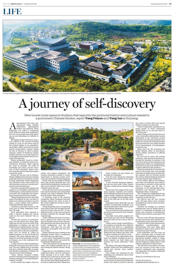 谢念表示,“我相信,(阳明·问道十二境)这条线路会吸引更多的游客来到贵州展开深度游览,特别那些对历史文化深感兴趣的人,前来贵州开启阳明心学的寻根之旅、知行合一的人文之旅、天人合一的自我发现之旅。”