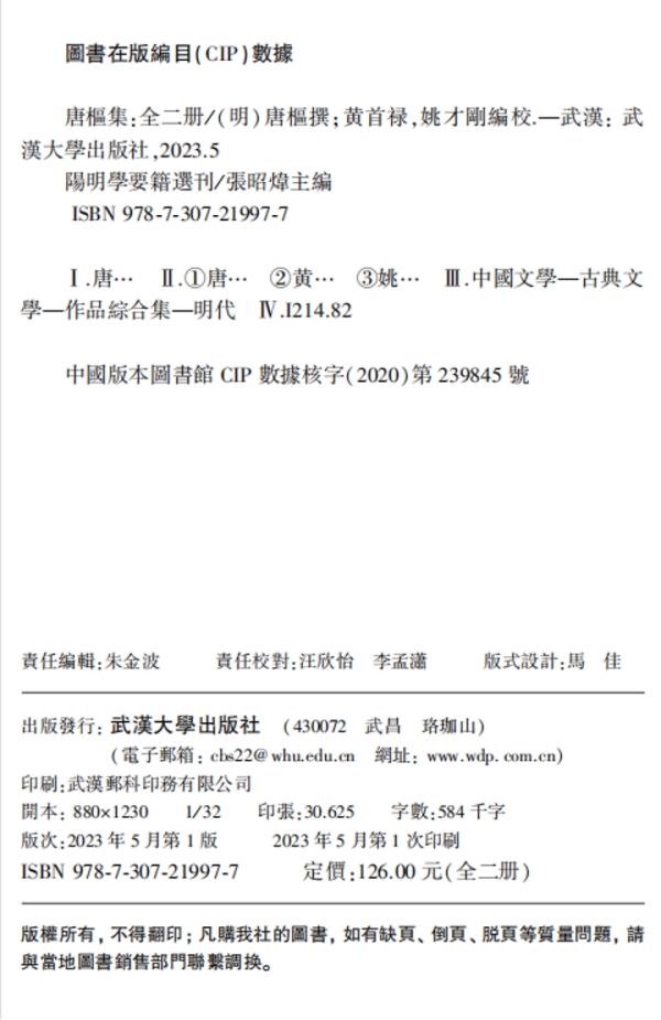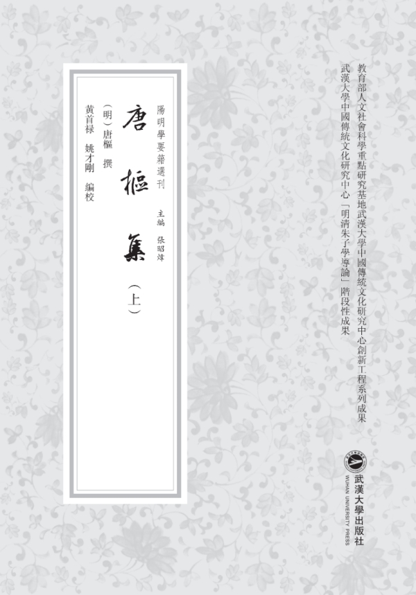 《唐枢集》(阳明学要籍选刊)近日由武汉大学出版社出版,编校者为湖北大学黄首禄、姚才刚,全书共计58.4万字。该书列入《阳明学要籍选刊》,由武汉大学中国传统文化研究中心张昭炜主编。