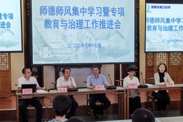在师德师风教育暨四个党支部联合举行的主题党日活动中,通过现场参观,听取九中校领导党课及贵州省最美劳动者、贵阳好老师先进事迹分享以及表彰先进,激励了广大老师见贤思齐,强化理想信念、不忘育人初心、加强道德养成,进一步增强了老师们争做“四有好老师”、当好“四个引路人”的优良作风。