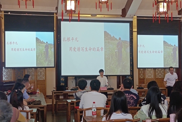 师德师风教育暨主题党日活动在书院勉学堂举行。中国文化书院负责人向老师们介绍了中国文化书院作为省级人文社科研究基地、人文社科示范基地、优秀校园文化育人基地的学术研究、文化传承、文化交流、素质教育基本情况,介绍关于国家领导人亲笔为学校题写校名、关怀学校发展,莅临学校实验室考察科研工作、在中国文化书院勉学堂参与“我读《大学》——以‘五四’精神解读‘修齐治平’的当代价值”为主题的“溪山论道”读书会活动并对青年学子殷切嘱托,寄望当代青年弘扬中华优秀传统文化的当代价值并以中华先贤为榜样,立志成才、磨炼奋进、争做中华民族脊梁的情况。