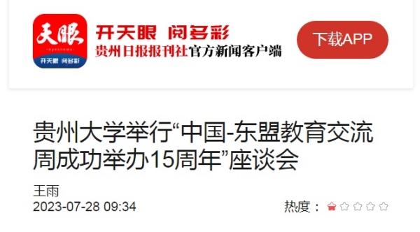 7月25日,贵州大学在中国文化书院举行“中国-东盟教育交流周成功举办15周年”座谈会。