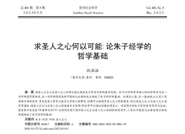 作者简介:祝浩涵,博士,贵州大学哲学院讲师,硕士生导师,贵州省中国共产党人“心学”与推进党的建设新的伟大工程高端智库研究人员。主要研究方向: 中国哲学。
