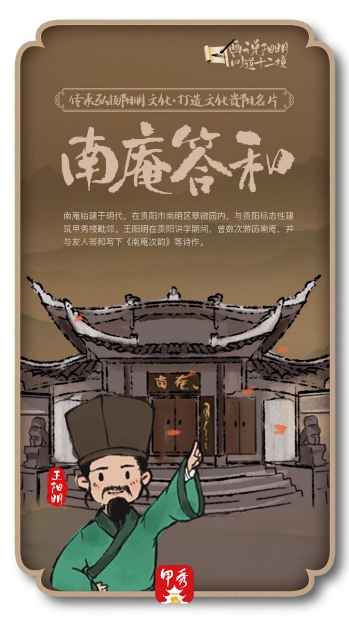 在贵阳文明书院讲学期间,王阳明化身“旅游大使”,足迹遍布贵阳全城的名胜古迹。其中,王阳明曾数次游历南庵,还在此狂发三条“朋友圈”,写下《南庵次韵》两首和《徐都宪同游南庵次韵》。