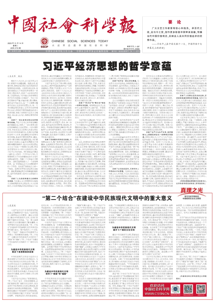 综上所述,“第二个结合”为建设中华民族现代文明提供了思想解放前提,把牢了“根脉”和“魂脉”,敞开了更广阔的文化空间。立足“第二个结合”,有助于坚定地捍卫中华文明的文化主体性,持续推进建设中华民族现代文明的进程,不断开创人类文明新形态。