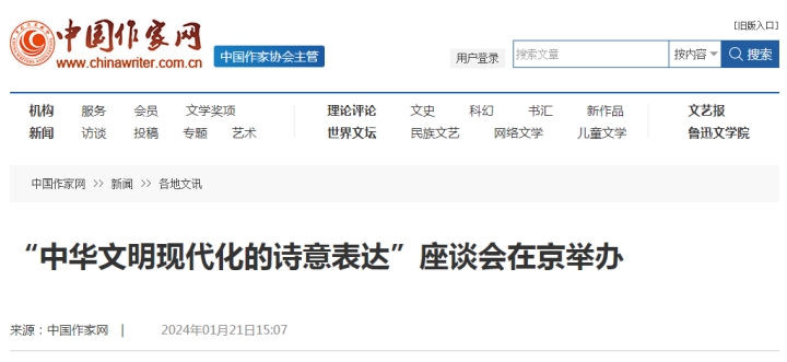 习近平总书记在文化传承发展座谈会上的重要讲话中深刻指出,“中国式现代化赋予中华文明以现代力量,中华文明赋予中国式现代化以深厚底蕴”,揭示了中华文明与中国式现代化相互融通、彼此成就的内在联系。为深入学习习近平总书记在文化传承发展座谈会上的重要讲话精神,1月20日,“中华文明现代化的诗意表达”座谈会在京举行。中国作家协会党组成员、副主席、书记处书记李敬泽,中央马克思主义理论研究和建设工程咨询委员会委员陈晋,中国作家协会诗歌委员会主任吉狄马加,以及梁晓声、何向阳、李少君、刘笑伟、李舫、欧阳江河、张清华、张颐武、树才、孙新堂、曹宇翔、季亚娅等诗人、作家、评论家和多位京剧表演艺术家参加了会议。会议由中国诗歌学会常务副会长、秘书长王山主持。