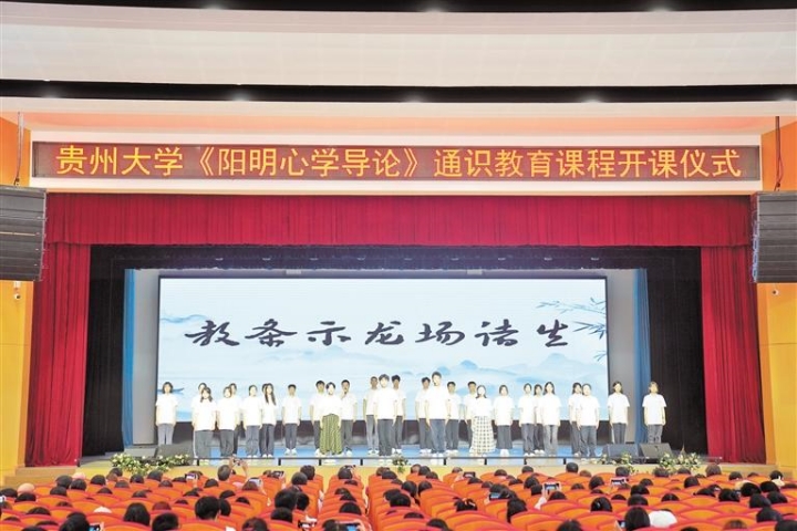 为培养更多服务中国式现代化建设的人才,贵州大学阳明学院开设了《阳明心学导论》通识课程,把阳明思想提倡的知行合一精神融入学生思想教育中,让立志、勤学成为学生的座右铭。