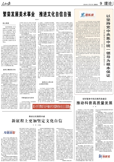 在担负新的文化使命中铸就文化自信。习近平总书记指出:“在新的起点上继续推动文化繁荣、建设文化强国、建设中华民族现代文明,是我们在新时代新的文化使命。”没有先进文化的积极引领,没有人民精神世界的极大丰富,没有民族精神力量的不断增强,一个国家、一个民族不可能屹立于世界民族之林。中国共产党坚持把马克思主义基本原理同中国具体实际相结合、同中华优秀传统文化相结合,在实践中不断丰富和发展马克思主义,开创了中国特色社会主义文化发展道路。新时代以来,我们党领导人民不断厚植现代化的物质基础,不断夯实人民幸福生活的物质条件,同时大力发展社会主义先进文化,传承中华文明,推动社会主义先进文化繁荣发展。坚定文化自信,就是坚持走自己的路。我们要紧紧围绕以中国式现代化全面推进强国建设、民族复兴伟业,坚持马克思主义在意识形态领域指导地位的根本制度,顺应人民日益增长的精神文化需求,发展社会主义先进文化,不断丰富人民精神世界,让全体人民始终拥有团结奋斗的思想基础、开拓进取的主动精神、健康向上的价值追求,努力推动文化创新,勇担新时代新的文化使命。