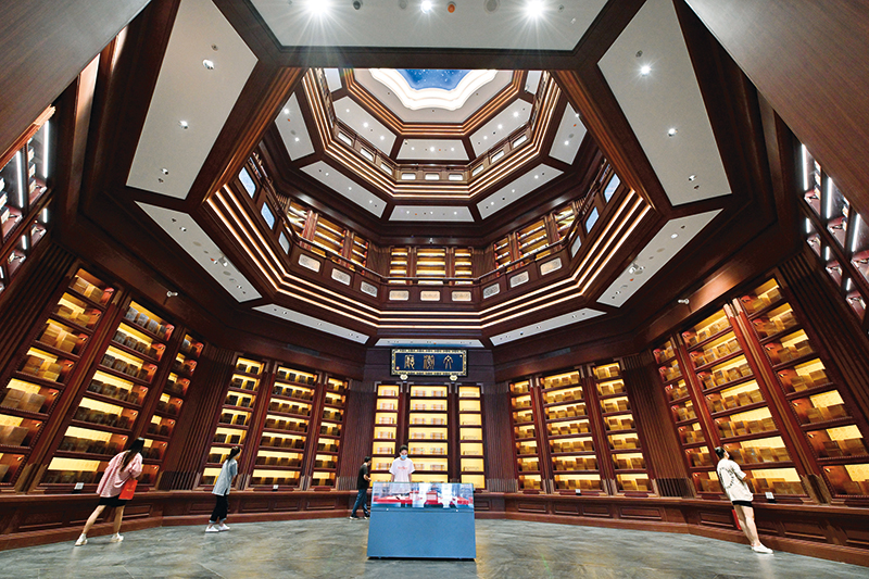 观众在位于北京的中国国家版本馆中央总馆文瀚厅内参观(2022年7月30日摄)李鑫 摄/本刊
