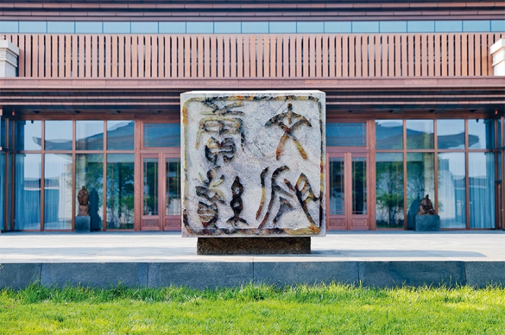 图为中国国家版本馆中央总馆一块篆刻着“赓续文脉”的寿山石。 中新社记者 韩海丹/摄
