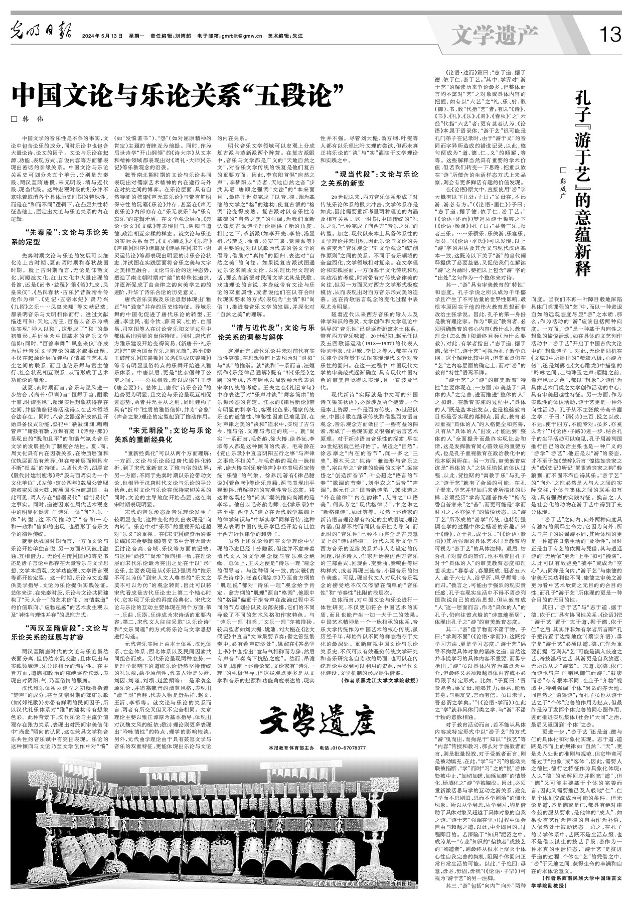 其三,“游”包括“向内”“向外”两种向度。当我们不再一叶障目般地深陷具体门类课程的“艺”中,而以一种进退自如的远观态度尽显“游”之本质,那么,作为活动的“游”应该包括两种向度。一方面,“游”是一种基于内向性之想象的愉悦活动,如在具体的文艺创作活动中,“游于艺”开启了中国古代文论中的“想象诗学”。对此,无论是陆机在《文赋》中所提出的“精骛八极,心游万仞”,还是刘勰在《文心雕龙》中描绘的“吟咏之间,吐纳珠玉之声;眉睫之前,卷舒风云之色”,都以“想象”之游作为具体艺术门类之文学创作活动的中心,具有审美超越性特征。另一方面,作为实践性的体认活动,游于艺更是一种外向性活动。孔子从不主张做书斋书蠹之学,“子曰:‘诵《诗》三百,授之以政,不达;使于四方,不能专对;虽多,亦奚以为?’”(《论语·子路》)进一步,结合孔子的生平活动可以窥见,孔子周游列国推行自己的政治主张也是一种广义的“游学”“游艺”,他正是以“游”的姿态,才不至于如《楚辞》所言“惶惶如丧家之犬”或《史记》所记“累累若丧家之狗”般狼狈,而不固不滞自得其乐。“游于艺”的“向外”之维必然是人与人之间的实际交往,个体与集体之间的联系和互动,具有强烈的实践特征。换言之,人是社会化的动物在游于艺中得到了充分体现。